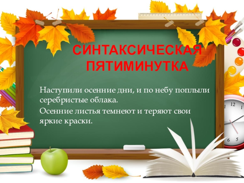 СИНТАКСИЧЕСКАЯ ПЯТИМИНУТКАНаступили осенние дни, и по небу поплыли серебристые