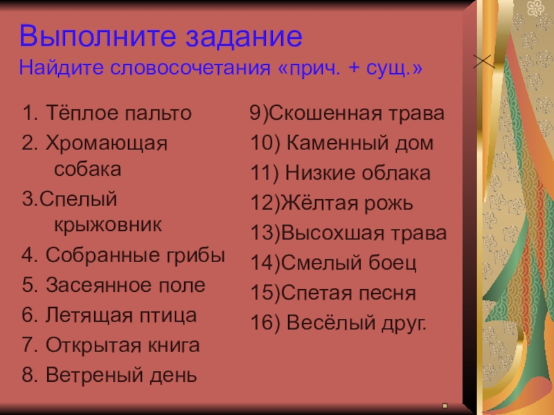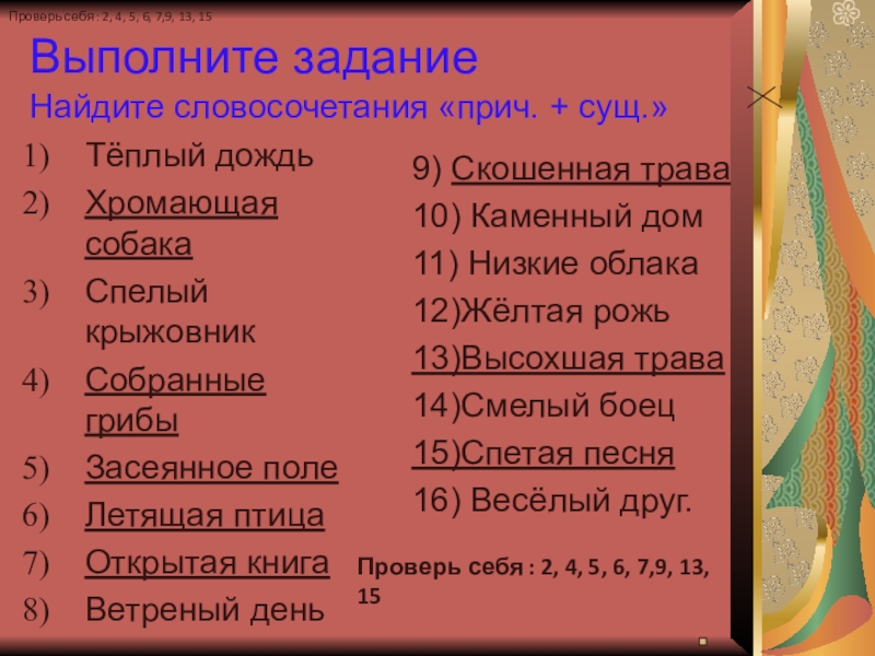 Проверь себя : 2, 4, 5, 6, 7,9, 13, 15