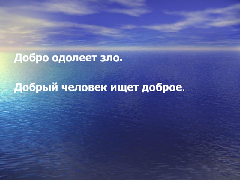Добро одолеет зло.Добрый человек ищет доброе.