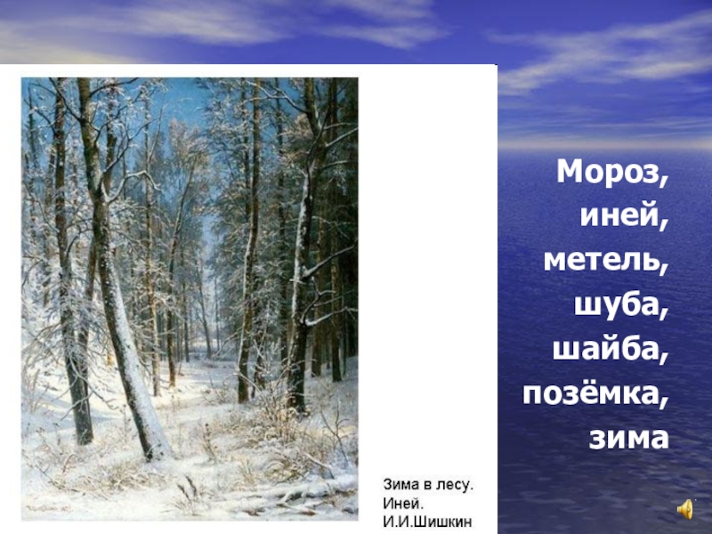 Мороз, иней, метель, шуба, шайба, позёмка, зима