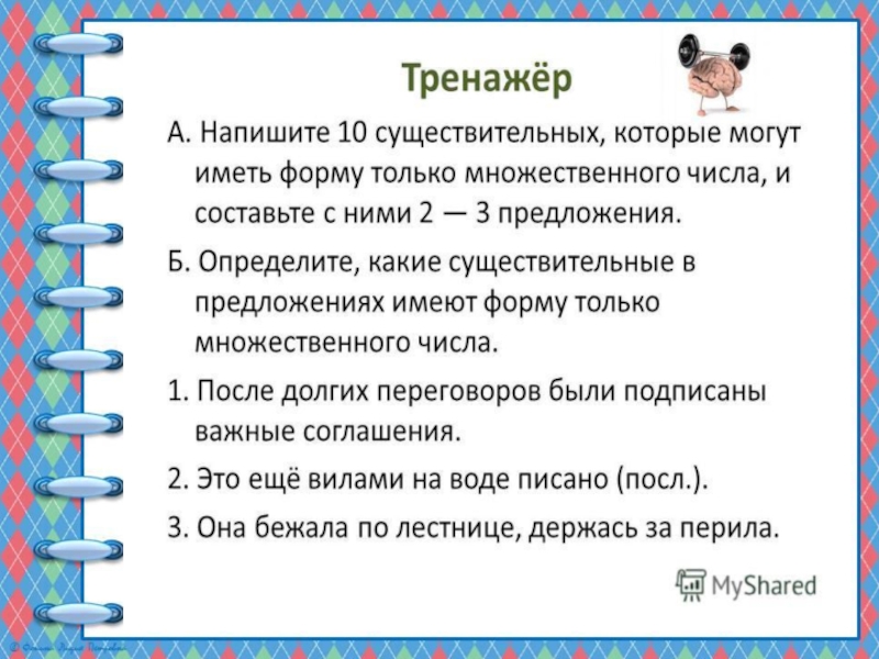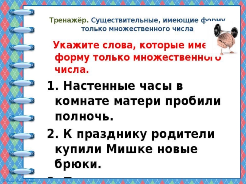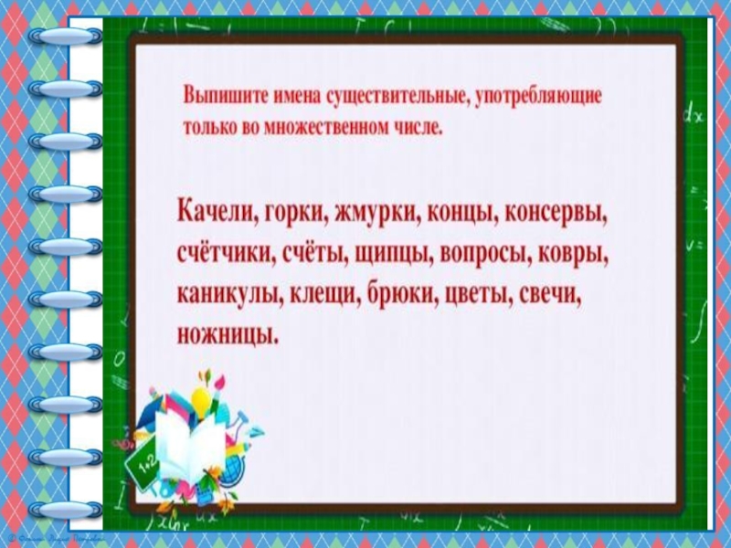 Презентация, доклад по русскому языку на тему Имена существительные только множественного числа (5 класс)