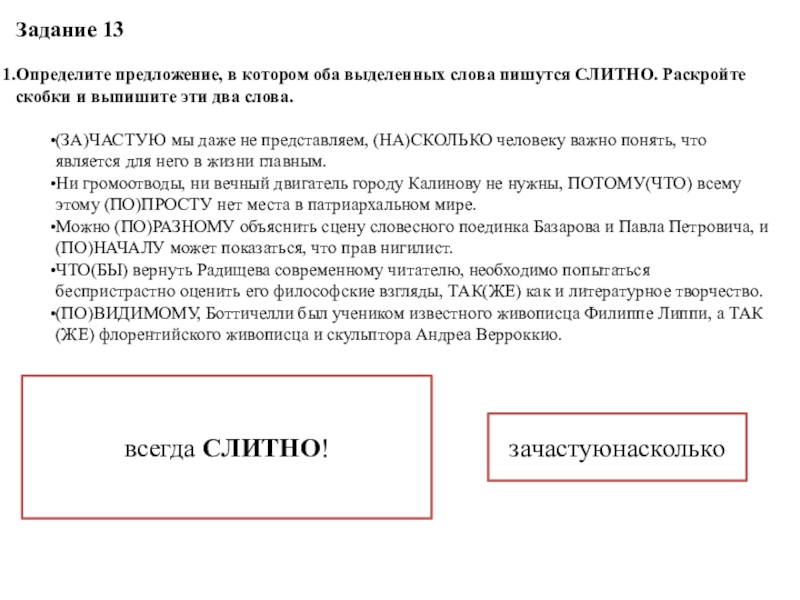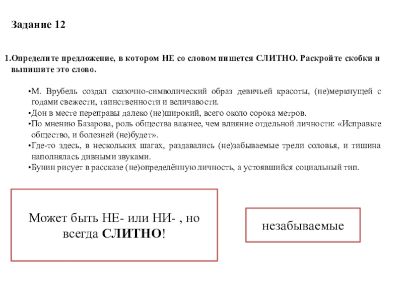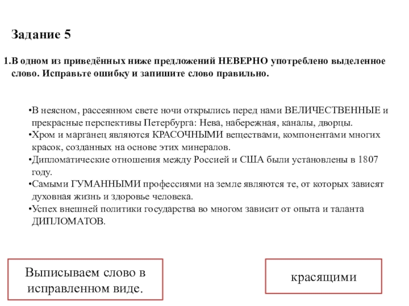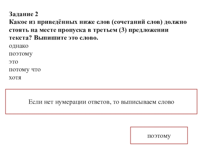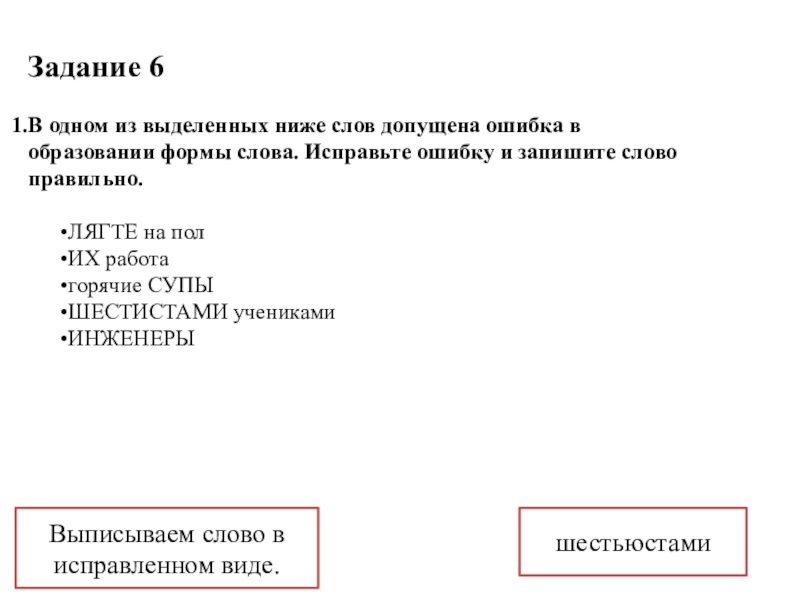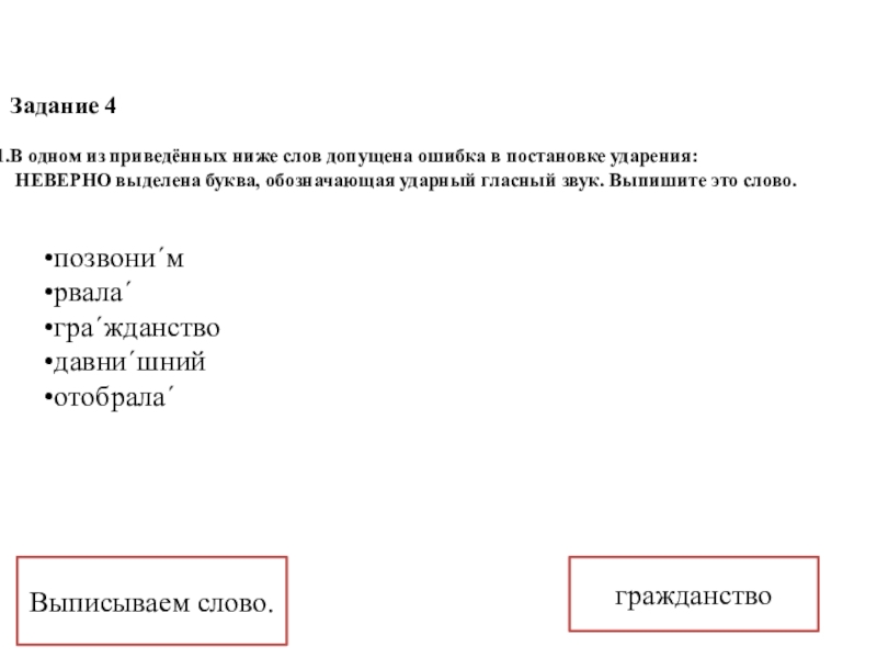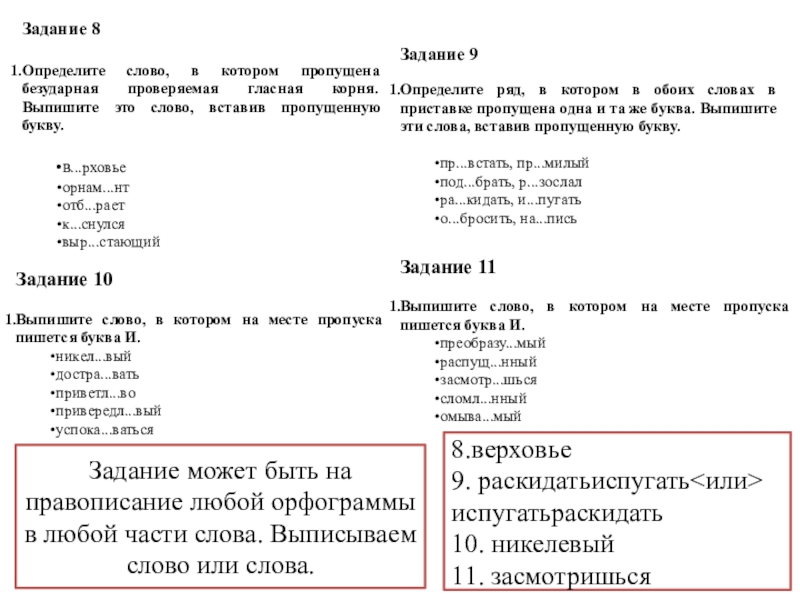 Задание может быть на правописание любой орфограммы в любой части слова. Выписываем слово или слова.