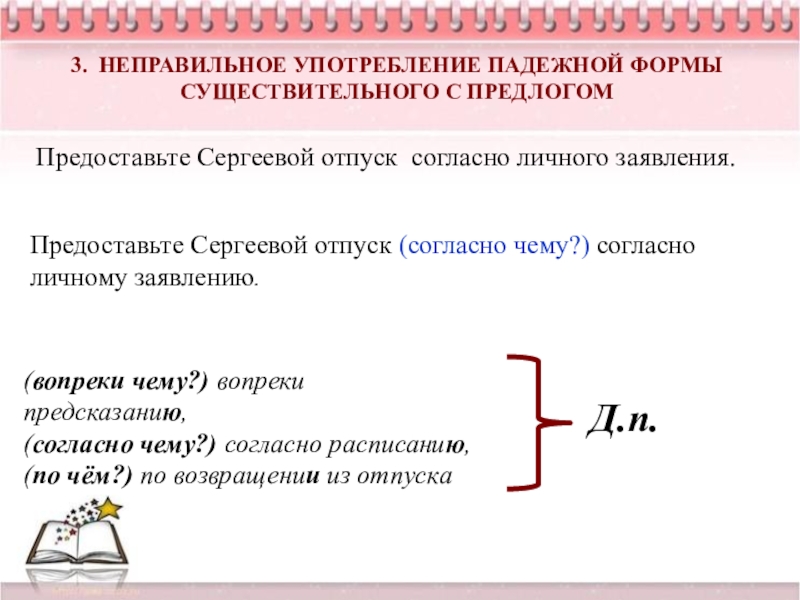 Предоставьте Сергеевой отпуск (согласно чему?) согласно личному заявлению.