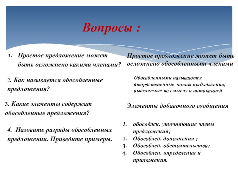 4. Назовите разряды обособленных предложении. Приведите примеры.