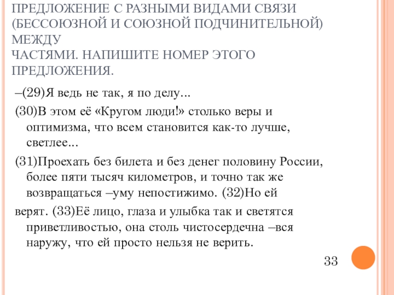 (31)Проехать без билета и без денег половину России, более пяти тысяч километров, и точно так же возвращаться –уму непостижимо. (32)Но ей