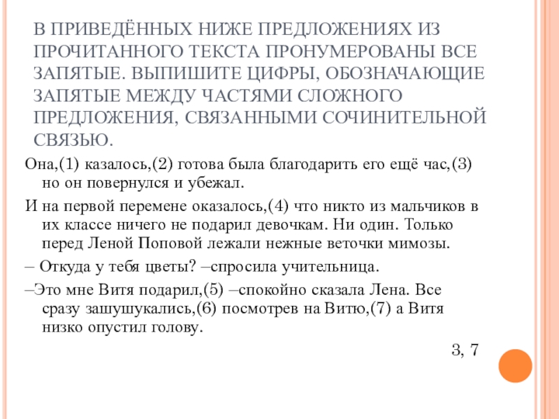 –Это мне Витя подарил,(5) –спокойно сказала Лена. Все сразу зашушукались,(6) посмотрев на Витю,(7) а Витя низко опустил голову.