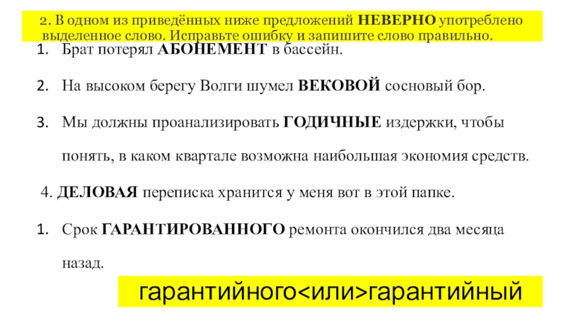 2. В одном из приведённых ниже предложений НЕВЕРНО употреблено выделенное слово. Исправьте ошибку и запишите слово правильно.