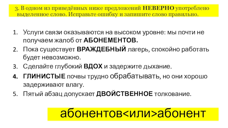 3. В одном из приведённых ниже предложений НЕВЕРНО употреблено выделенное слово. Исправьте ошибку и запишите слово правильно.
