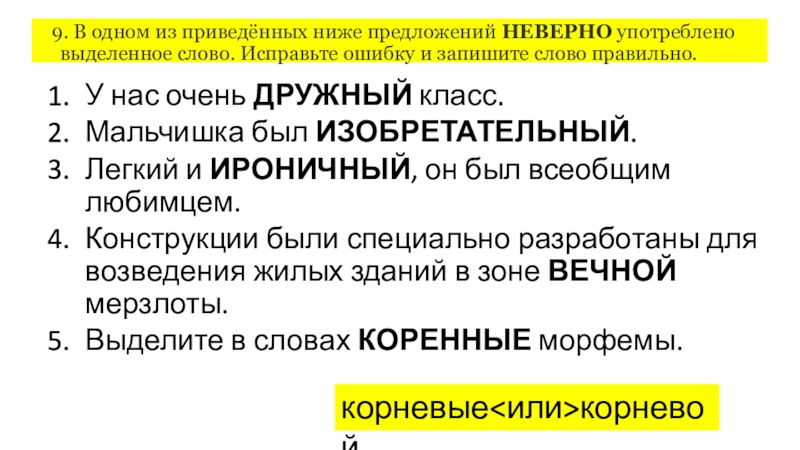 9. В одном из приведённых ниже предложений НЕВЕРНО употреблено выделенное слово. Исправьте ошибку и запишите слово правильно.