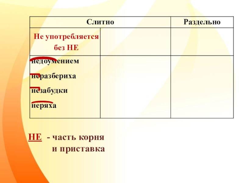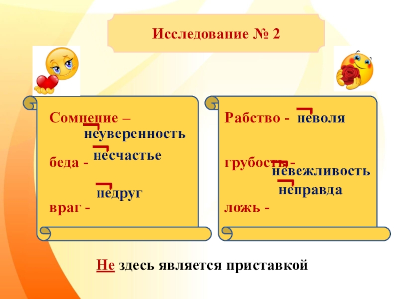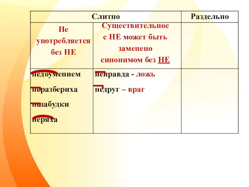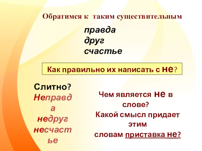 Слова для справок: невежливость, неправда, неуверенность, недруг, неволя, несчастье.