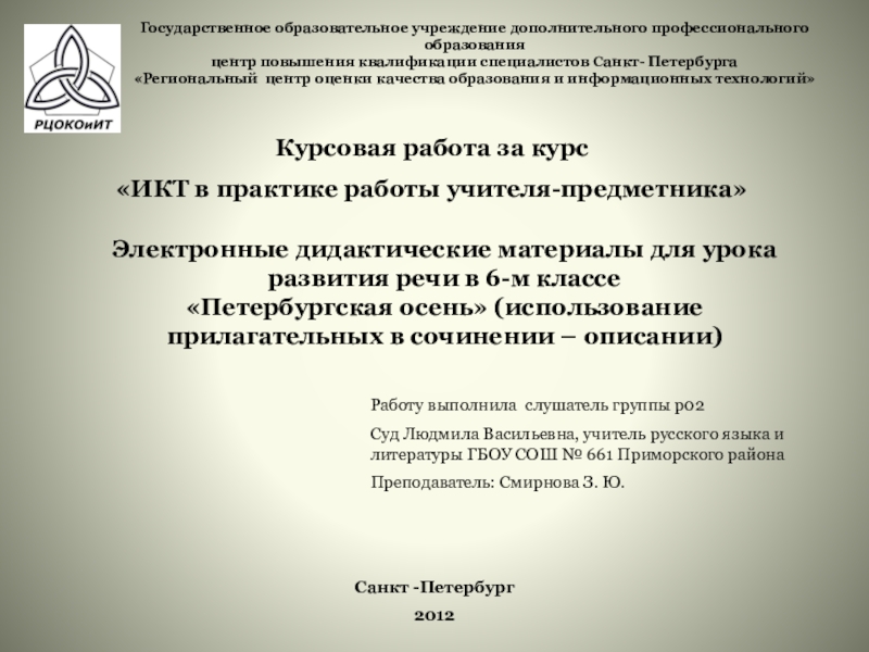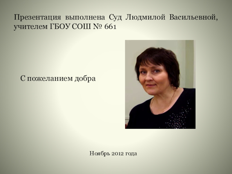 Суд Людмила Васильевна, учитель русского языка и литературы ГБОУ СОШ № 661 Приморского района