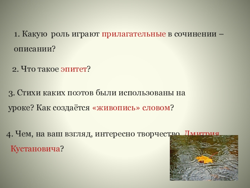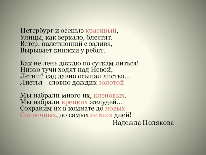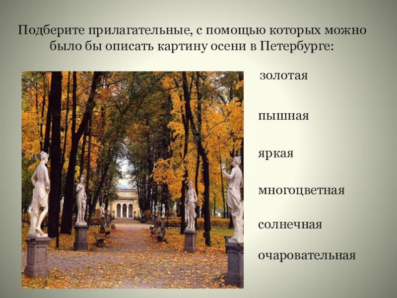 «Петербургская осень» (использование прилагательных в сочинении – описании)