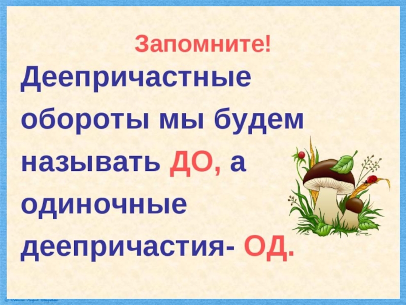 Презентация, доклад по русскому языку на тему Деепричастный оборот (7 класс)
