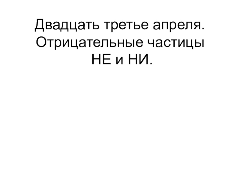 Слайд 4Двадцать третье апреля. Отрицательные частицы НЕ и НИ.
