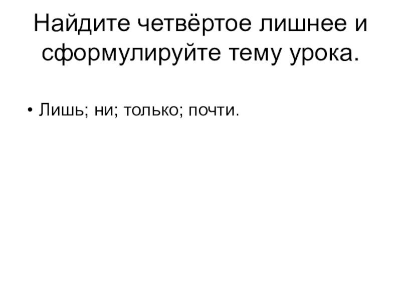 Найдите четвёртое лишнее и сформулируйте тему урока.Лишь; ни; только; почти.
