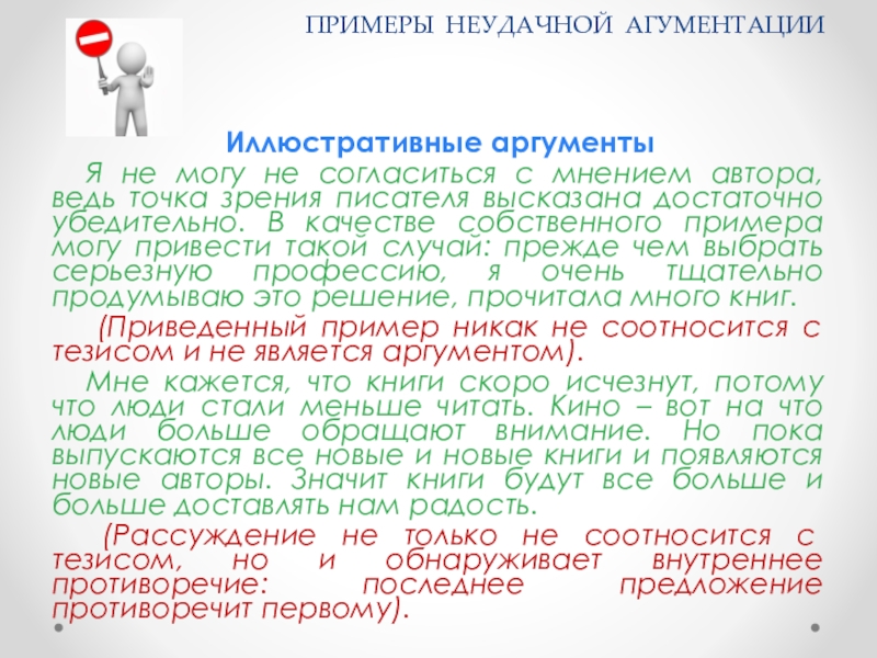 Слайд 11ПРИМЕРЫ НЕУДАЧНОЙ АГУМЕНТАЦИИ