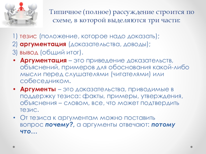 Аргументация – это приведение доказательств, объяснений, примеров для обоснования какой-либо мысли перед слушателями (читателями) или собеседником.