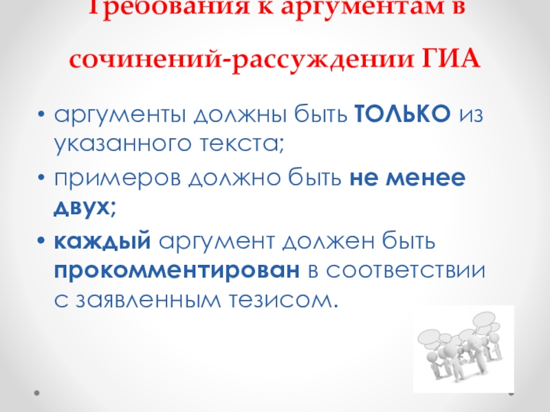 Слайд 15Требования к аргументам в сочинений-рассуждении ГИА