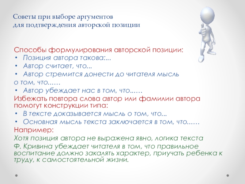 Аргументы – это доказательства, приводимые в поддержку тезиса: факты, примеры, утверждения, объяснения – словом, все, что может подтвердить тезис.