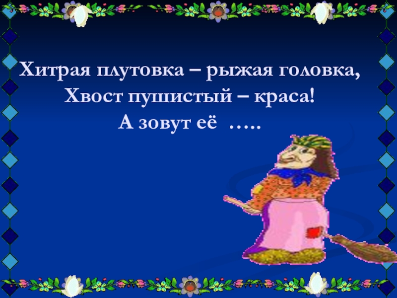 Слайд 10Хитрая плутовка – рыжая головка, Хвост пушистый – краса! А зовут её  …..