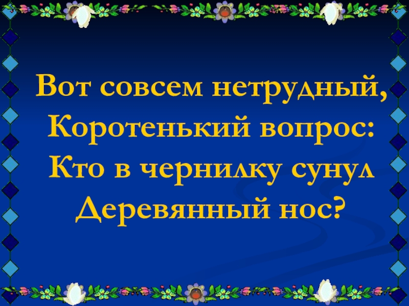 Вот совсем нетрудный,Коротенький вопрос:Кто в чернилку сунулДеревянный нос?