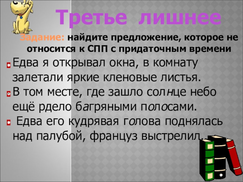 Задание: найдите предложение, которое не относится к СПП с придаточным времени