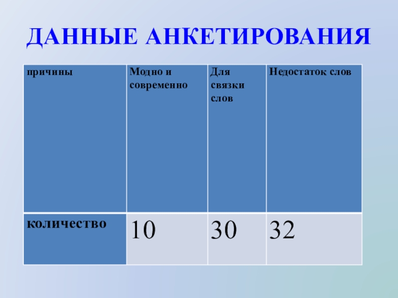 Слайд 11ДАННЫЕ АНКЕТИРОВАНИЯ