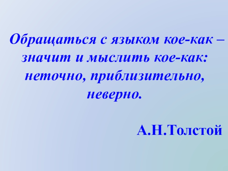 Обращаться с языком кое-как – значит и мыслить кое-как: неточно, приблизительно,