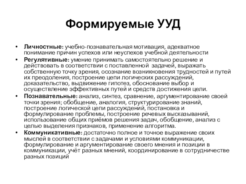 Коммуникативные: достаточно полное и точное выражение своих мыслей в соответствии с задачами и условиями коммуникации, формулирование и аргументирование своего мнения и позиции в коммуникации, учёт разных мнений, координирование в сотрудничестве разных позиций