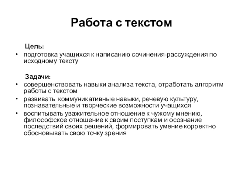 совершенствовать навыки анализа текста, отработать алгоритм работы с текстом