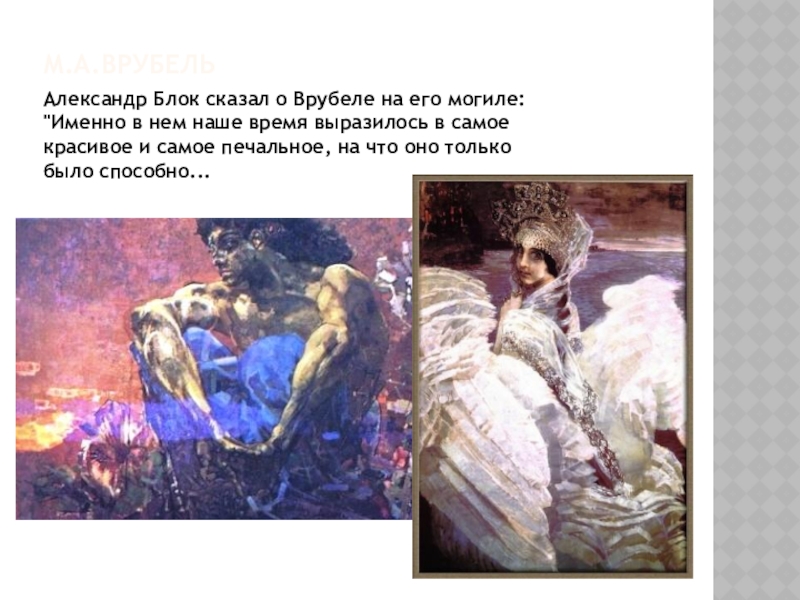 Александр Блок сказал о Врубеле на его могиле: "Именно в нем