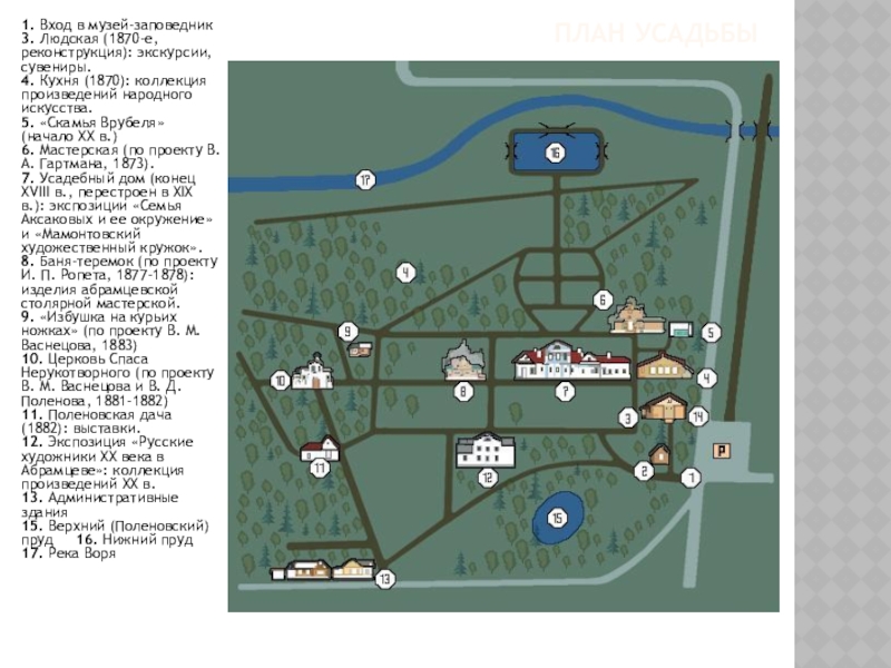 15. Верхний (Поленовский) пруд 16. Нижний пруд