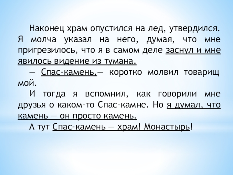 Слайд 14Наконец храм опустился на лед, утвердился. Я молча указал на него,