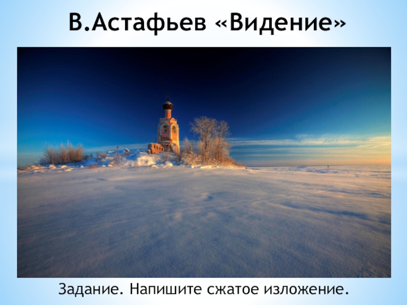 Слайд 1Подготовка к сжатому изложению по очерку В.Астафьева «Видение»