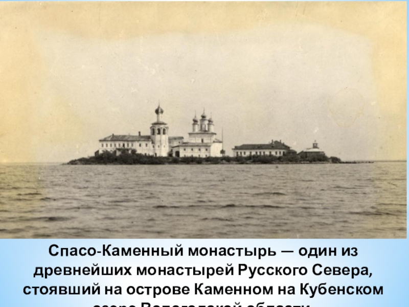 Слайд 3Спасо-Каменный монастырь — один из древнейших монастырей Русского Севера, стоявший на