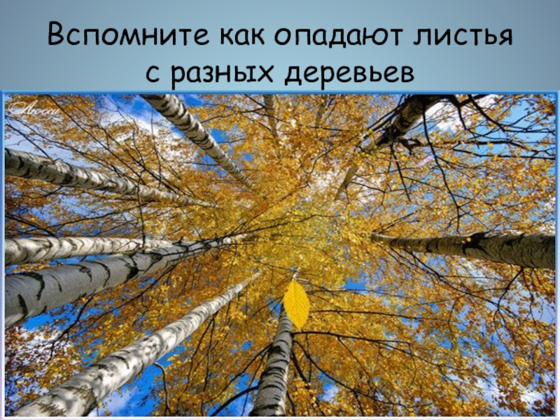 Слайд 3Вспомните как опадают листья с разных деревьев