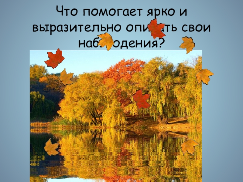 Слайд 2Что помогает ярко и выразительно описать свои наблюдения?