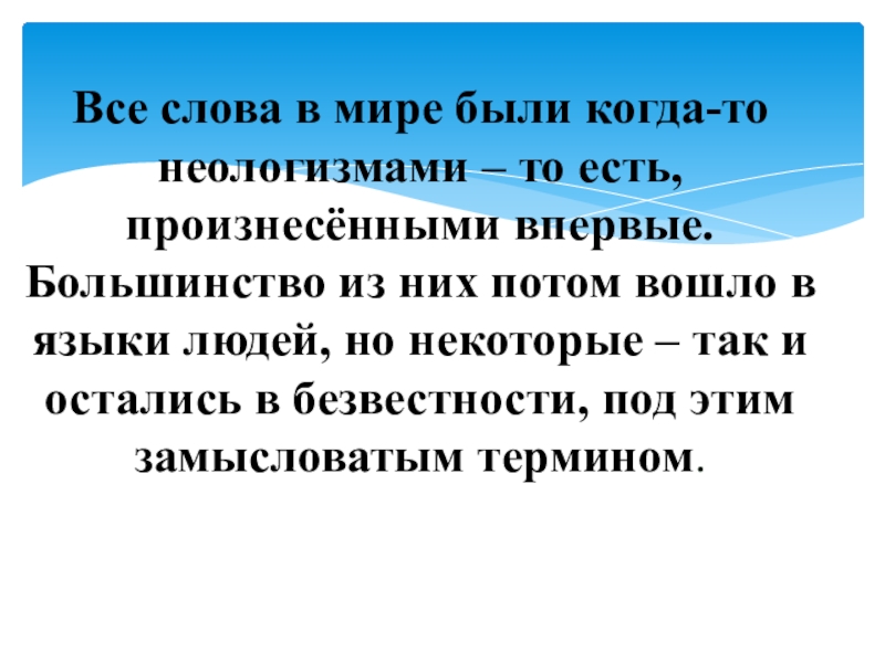 Слайд 20Все слова в мире были когда-то неологизмами – то есть, произнесёнными