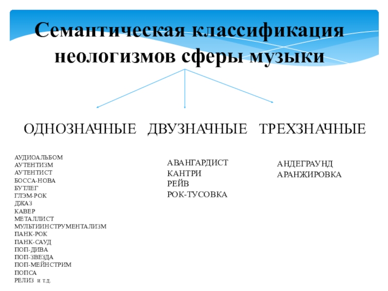 Слайд 18Семантическая классификация неологизмов сферы музыки