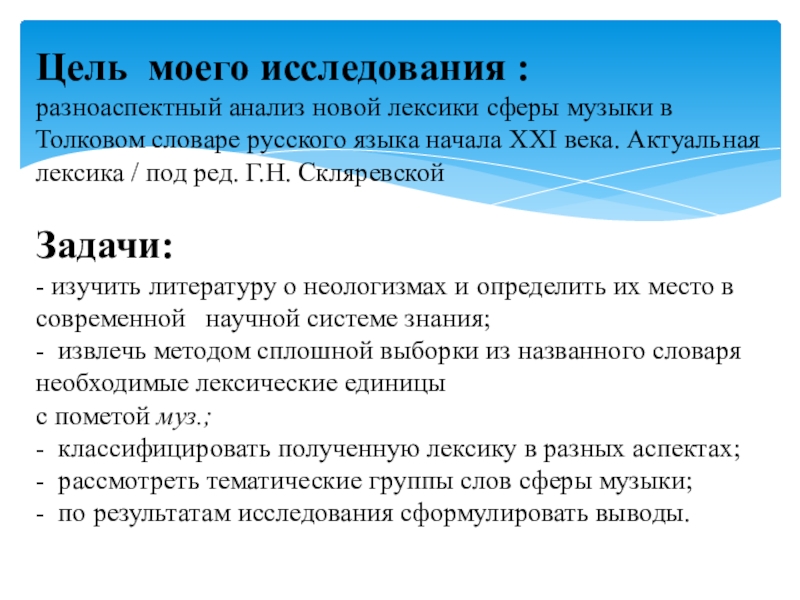 разноаспектный анализ новой лексики сферы музыки в Толковом