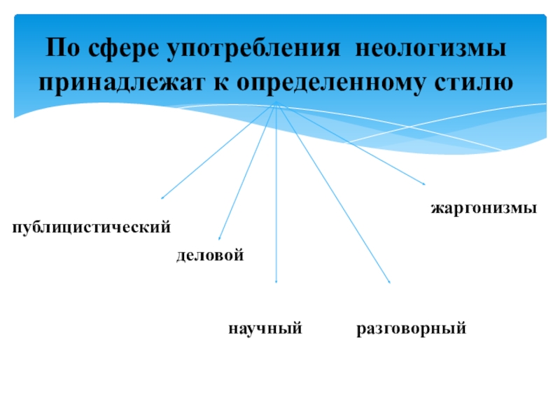 Слайд 12По сфере употребления неологизмы принадлежат к определенному стилю