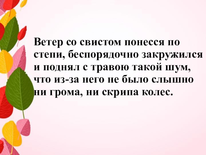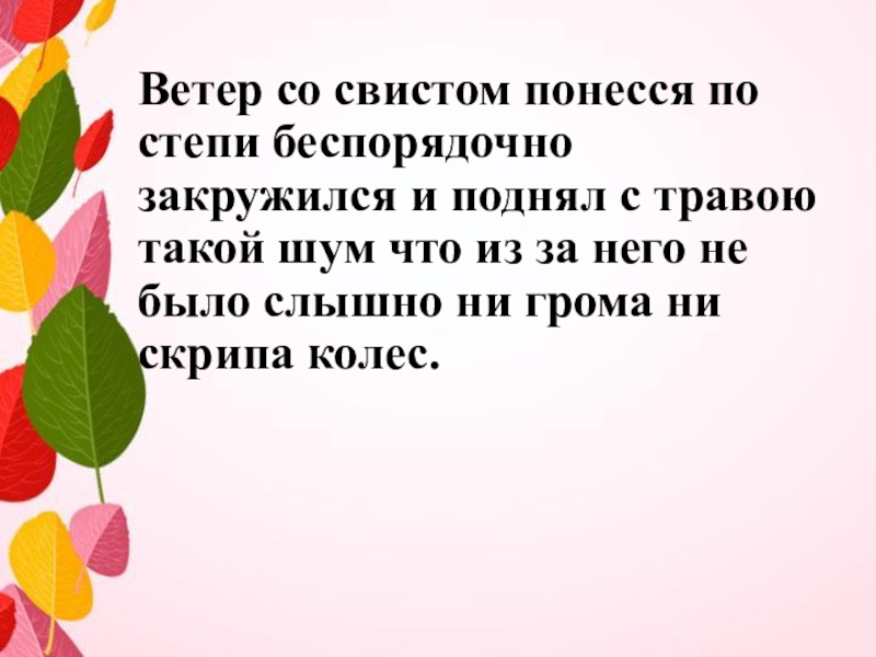 Слайд 3Ветер со свистом понесся по степи беспорядочно закружился и поднял с