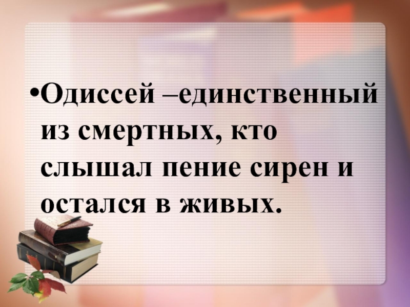 Одиссей –единственный из смертных, кто слышал пение сирен и остался в живых.