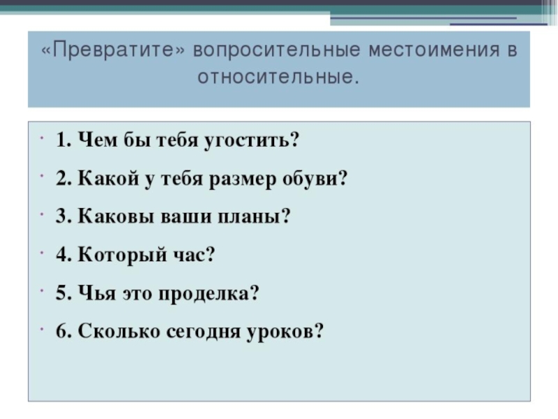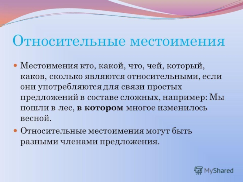 Презентация, доклад по русскому языку на тему Относительные местоимения 6 класс