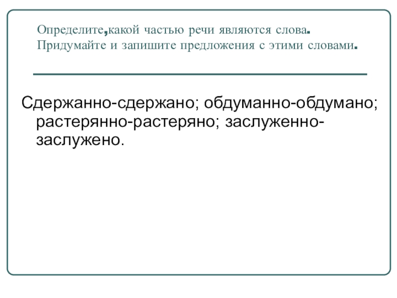 Слайд 9Определите,какой частью речи являются слова.Придумайте и запишите предложения с этими словами.