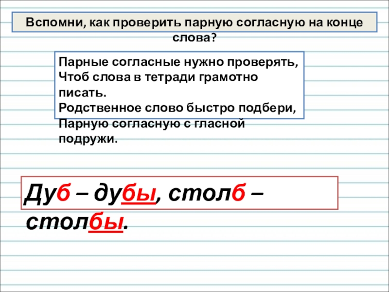 Дуб – дубы, столб – столбы.