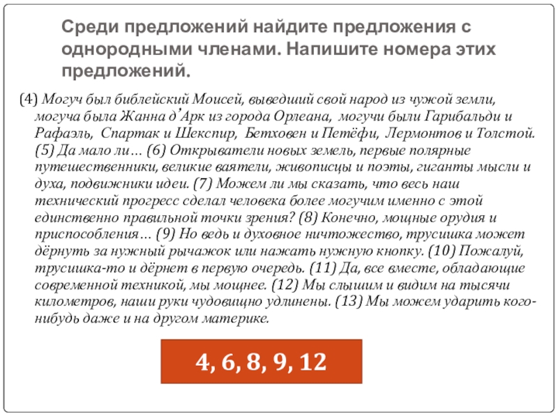 4, 6, 8, 9, 12
