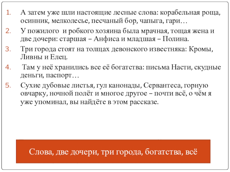 Слова, две дочери, три города, богатства, всё