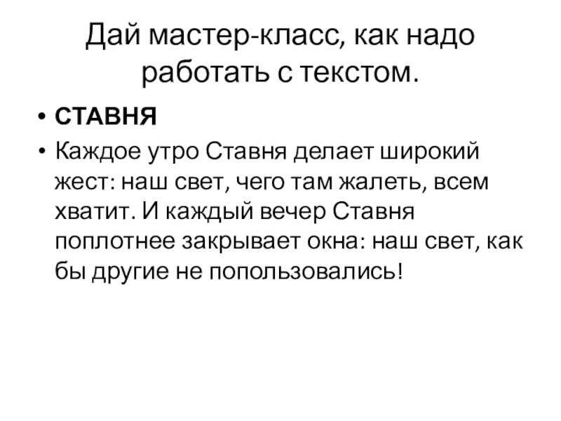 Слайд 12Дай мастер-класс, как надо работать с текстом.
