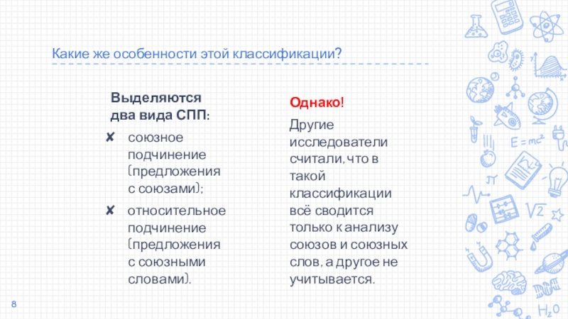 Другие исследователи считали, что в такой классификации всё сводится только к анализу союзов и союзных слов, а другое не учитывается.